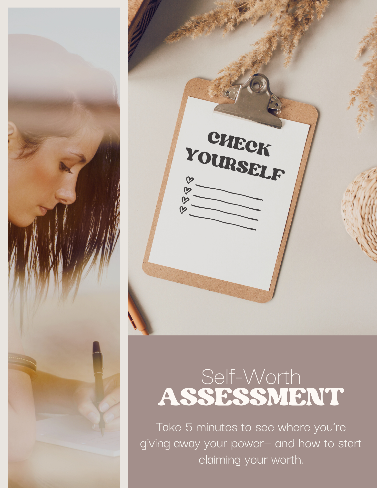 This quick, insightful assessment helps you take a real look at how self-worth is showing up (or not showing up) in your daily life. Designed to uncover the blind spots, patterns, and habits that may be quietly chipping away at your confidence, boundaries, and self-talk.